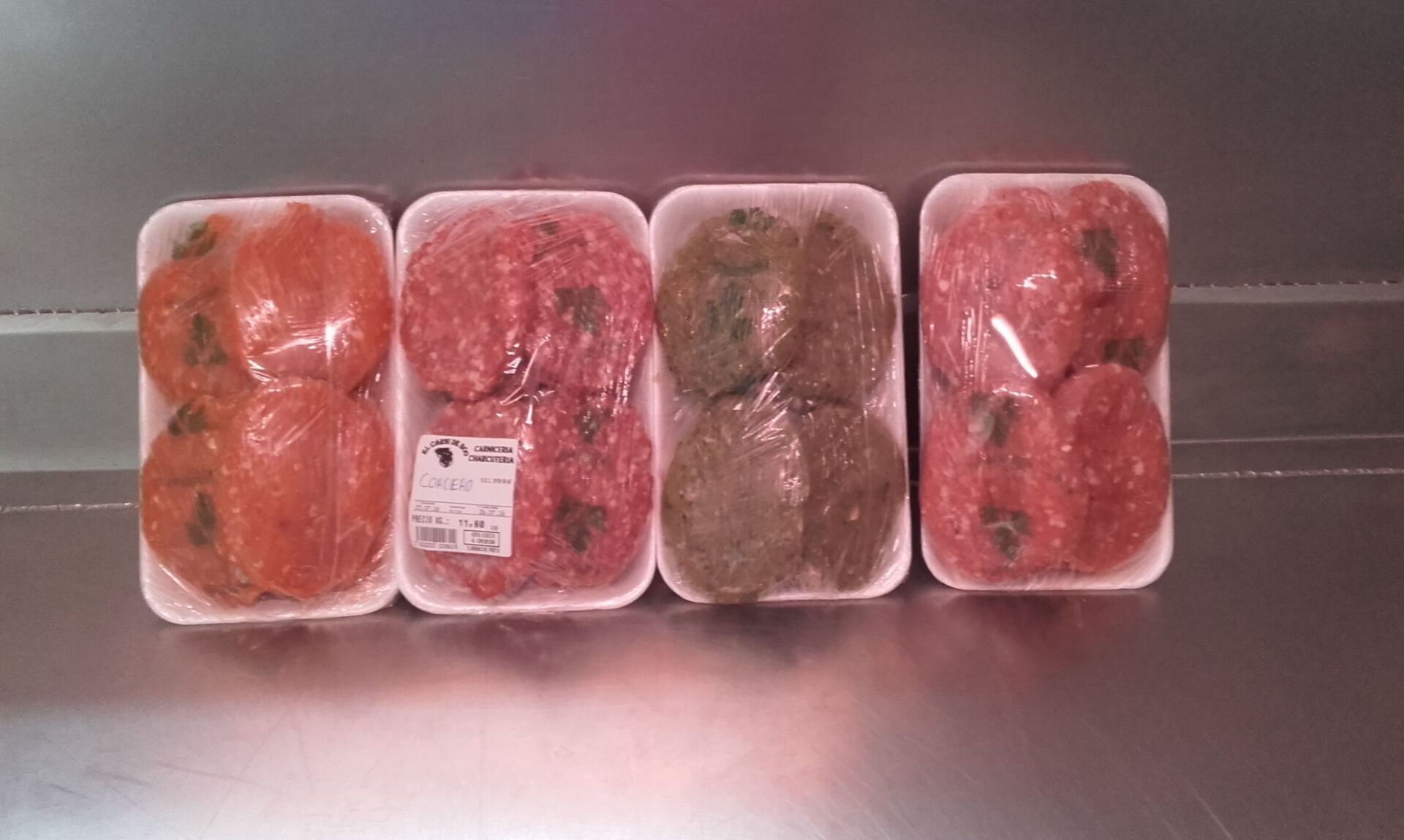 Hamburguesas: ternera, pollo, ternera y queso, pollo y zanahoria, pollo y espinacas